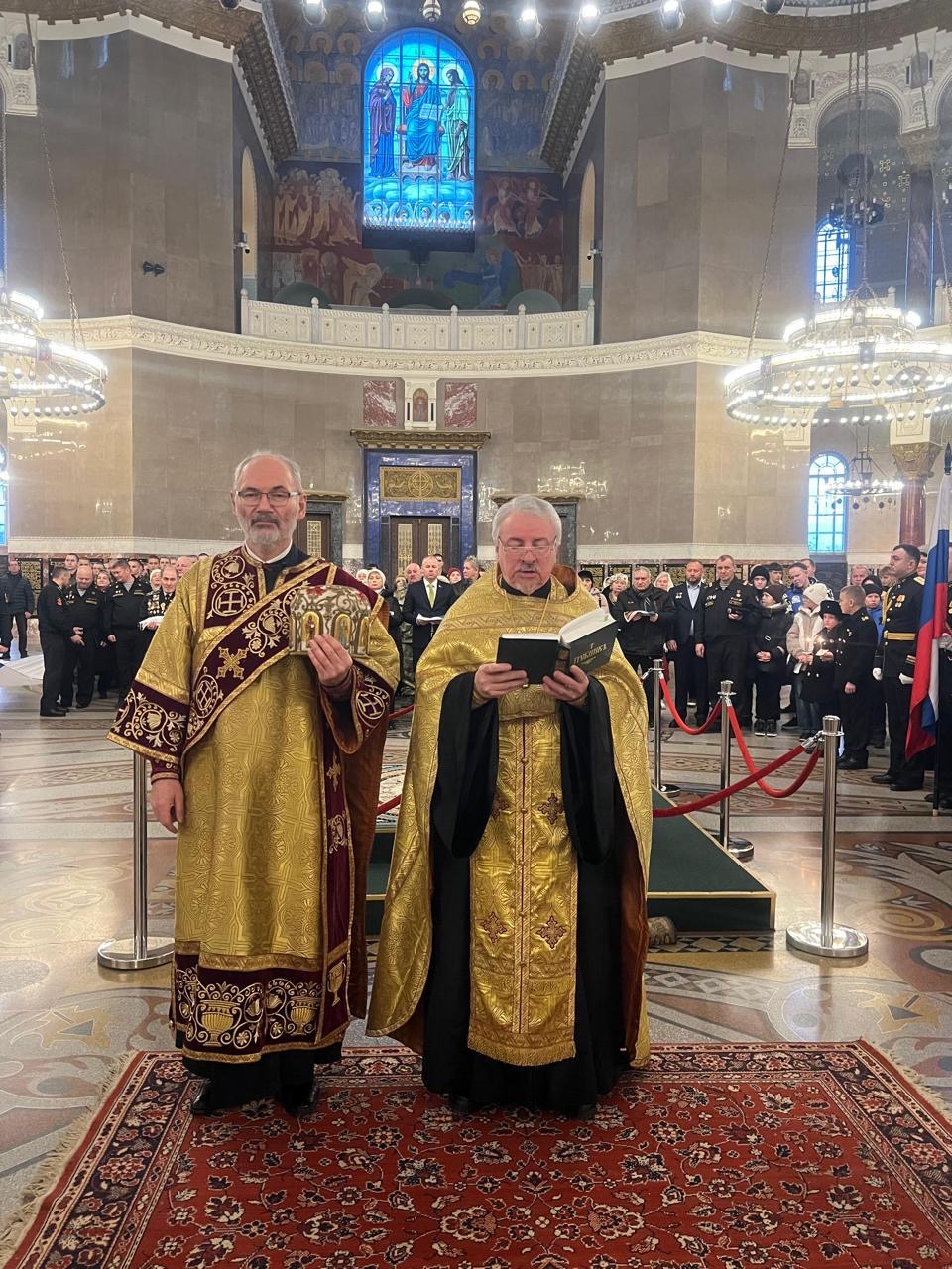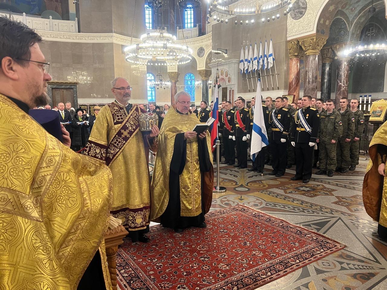 В честь празднования 320-летия создания морской пехоты России в Морском Никольском ставропигиальном соборе города Кронштадта состоялись торжественный молебен и чин освящения военных знамен. Богослужение возглавил духовник Военного благочиния Санкт-Петербургской епархии, настоятель храма святого равноапостольного князя Владимира при 442-м окружном госпитале и воссоздаваемого Введенского собора лейб-гвардии Семеновского полка протоиерей Михаил Погиблов.